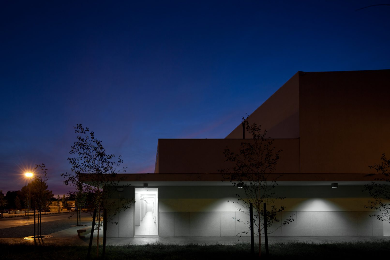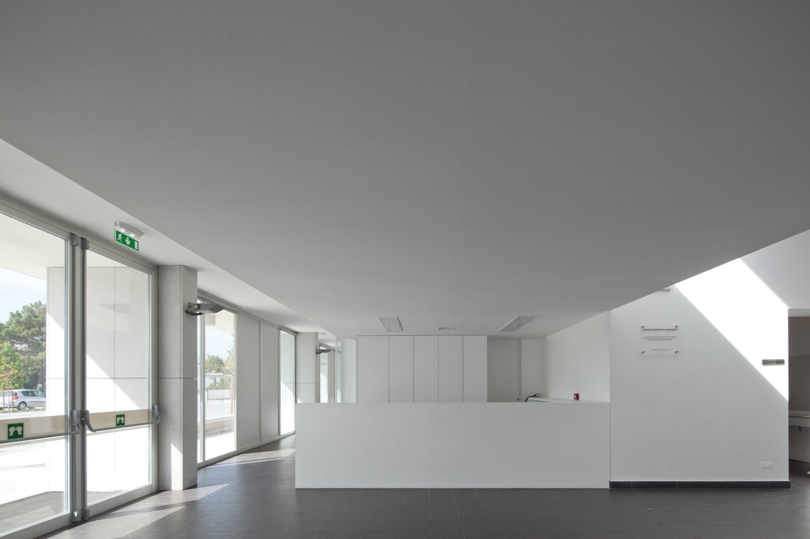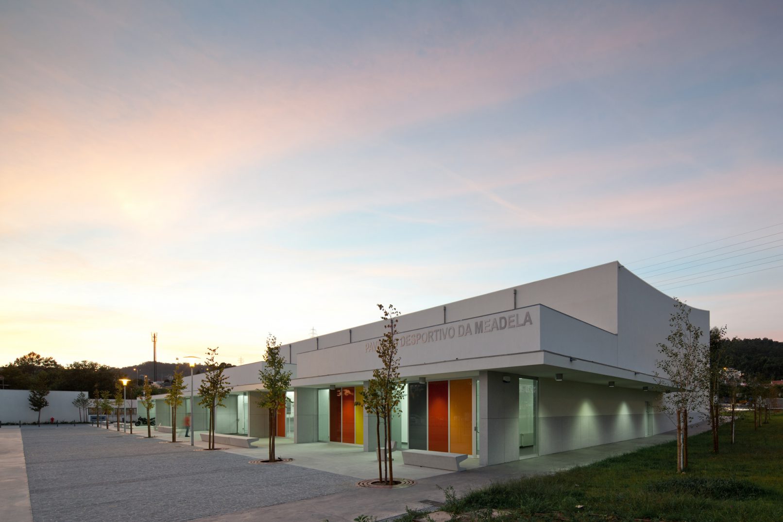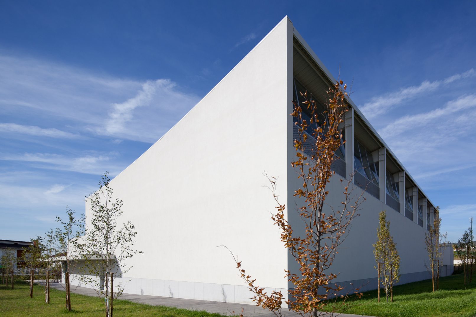 This facility integrates an urban study that articulates a pre-existing Primary School and a Kindergarten, already built, organized around a single public access space. In addition to the main entrance, the facility also faces to the south, the interior distribution galleries, while to the north is the largest volume, the sports grounds, naturally lit and ventilated. To reduce the volumetric impact of the construction on the lower level of the surrounding, the metallic roof of the sports grounds draws a subtle curved line, which creates a single slope with a south-facing pendant, opening to the north wide glazing that illuminates the game area. This results in a dynamic, white and opaque volumetry, in which the entrance area stands out due to the use of polychromatic panels.